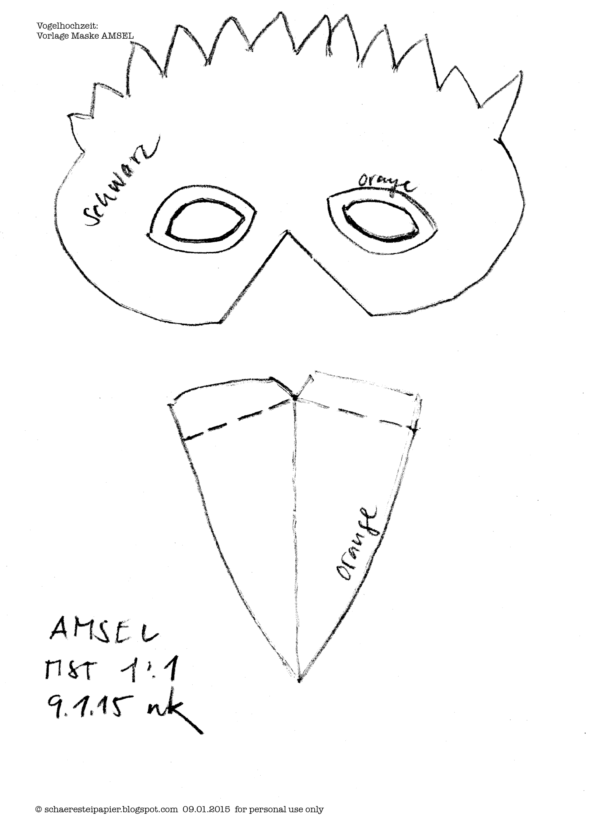Die Ausdrucke schneidet ihr aus und klebt sie auf einen festeren Karton. Dann ist eure Phantasie gefragt: Ihr könnt die Masken mit Stoffresten, Federn, Krepp, Perlen, Pailetten oder was euch so einfällt bekleben oder einfach bemalen.