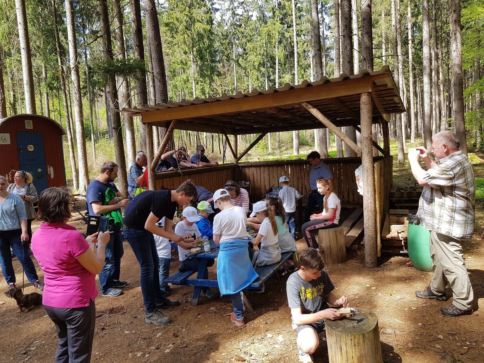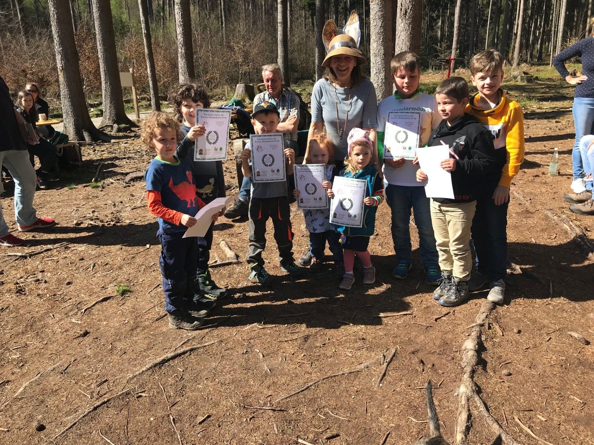 Am Ostermontag trafen sich 13 Wandermäuse des Wandervereins mit ihren Eltern/Großeltern am Dreimärker zur Familienwanderung mit Überraschungen. Zuerst ging es zur Schnitzeljagt durch den Wald, die Eltern/Großeltern mussten den Wandermäusen mit den Wanderführerinnen Sabine Klein und Beatrice Schick auf gekennzeichneten Pfaden folgen. Unterwegs fanden die Wandermäuse etliche Süßigkeiten, die der Osterhase wohl verloren hatte. Beim Waldkindergartenplatz wartete dann eine Erfrischung und es ging ans gemeinsame Basteln. Mit Holzscheiben, Nägeln, Birkenzweigen, Moos und viel Spaß, auch für die Älteren, wurden tolle Osternester gebastelt. Kaum waren die Wandermäuse mit ihren Nestern fertig, kam die Nachricht eines Spaziergängers, er hätte am Waldrand einen Osterhasen gesehen, wie er kleine Päckchen und Ostereier auf der Wiese versteckte. Nun gab es kein Halten mehr und in ganz kurzer Zeit waren alle Wandermäuse auf der Suche und auch erfolgreich. So ging ein schöner Ostermontag bei herrlichem Sonnenschein zu Ende und die Wandergruppe bedankte sich bei den Wanderführerinnen für das schöne Erlebnis.